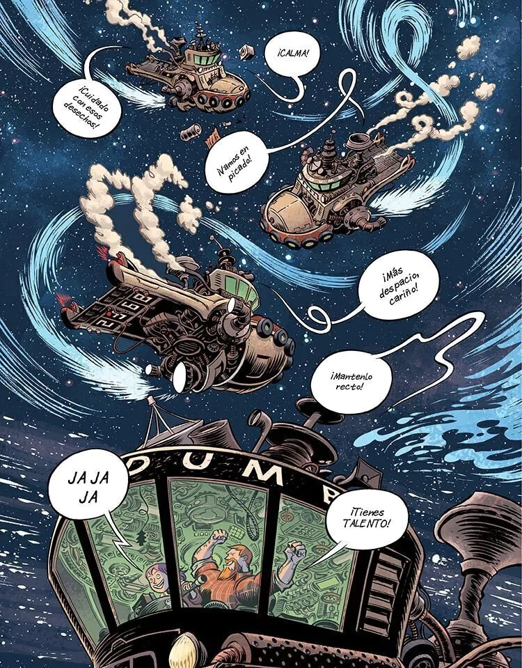 “Thompson ha creado un universo rebosante de imaginacion y portentosamente ilustrado. Una aventura desenfrenada y divertida reforzada por el tierno retrato de una familia que simplemente trata de salir adelante”. Publishers Weekly